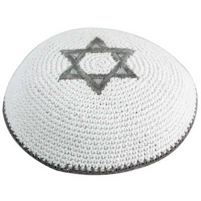 כיפה סרוגה מגן דויד בכסף 16 ס"מ