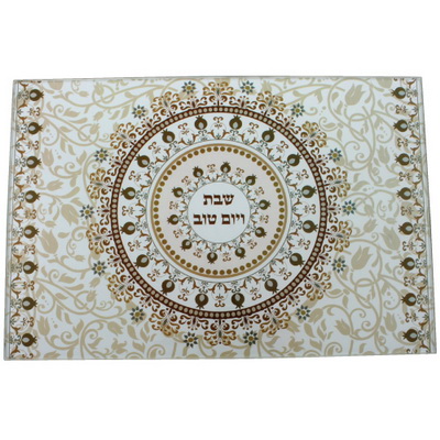 מגש חלה זכוכית משובץ באבנים 40x25 ס"מ