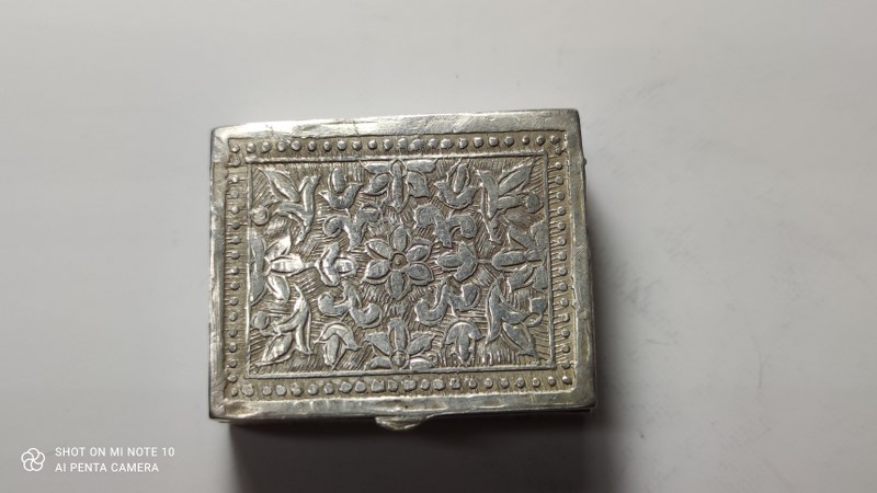 קופסת טבק כסף מעוטרת פרחים עשויה כסף,