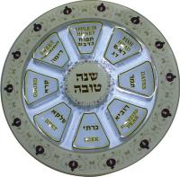 מגש עגול זכוכית עם אבנים לראש השנה 40 ס"מ