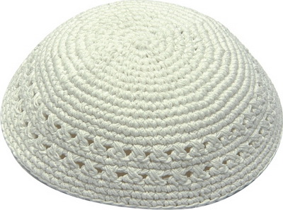כיפה סרוגה 20 ס"מ לבן מחורר