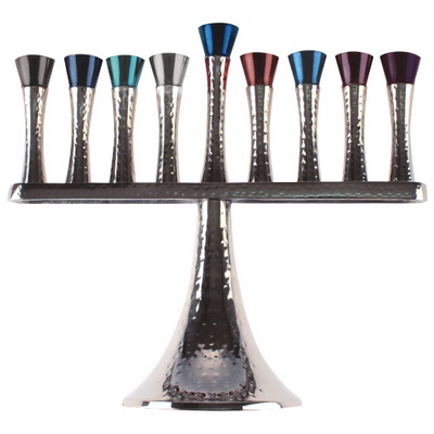 חנוכייה אלומיניום מרוקע עם קנים צבעוניים 25 ס"מ