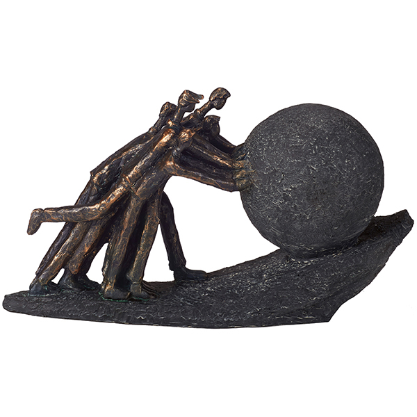 פסל אומנותי - " ביחד מצליחים " חמש דמויות דוחפות סלע במעלה ההר ZA-4171 גובה 20 ס"מ