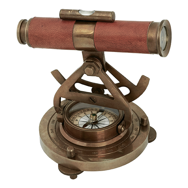 טלסקופ שולחני מנחושת מצופה עור משולב במד זווית ימאים + מצפן נחושת ZA-4212